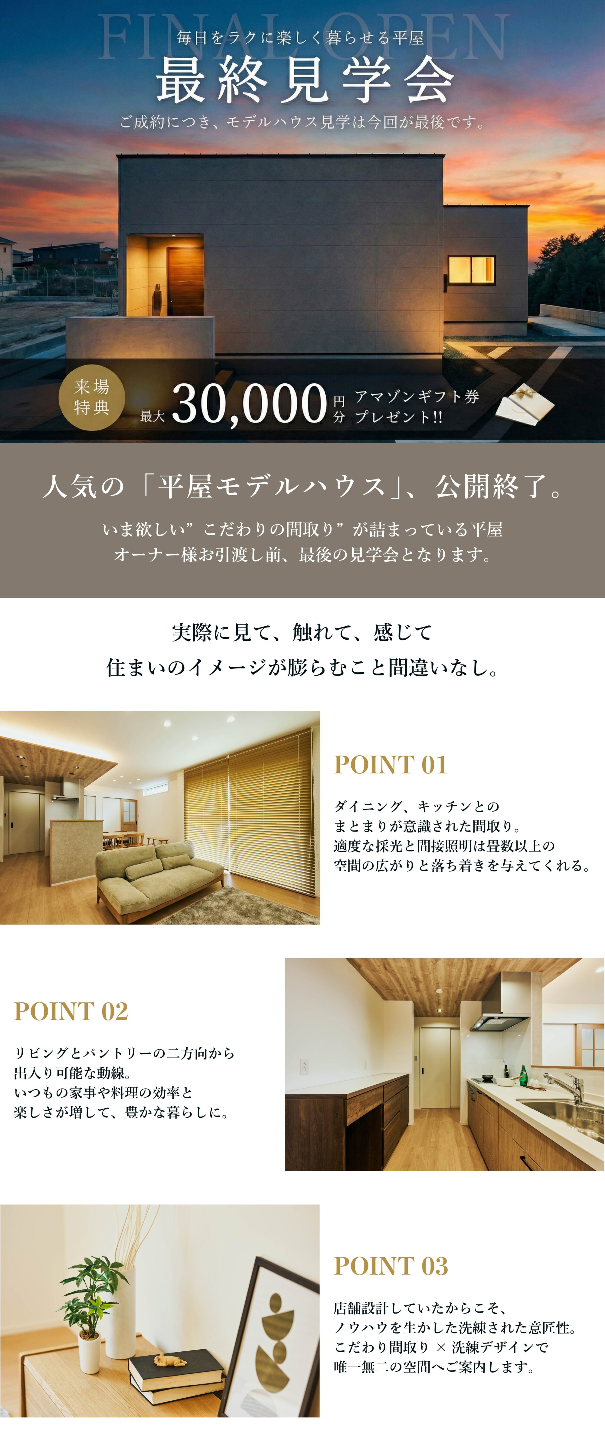 『【ご成約につき公開終了】人気の「平屋モデルハウス」最後の見学会』 |